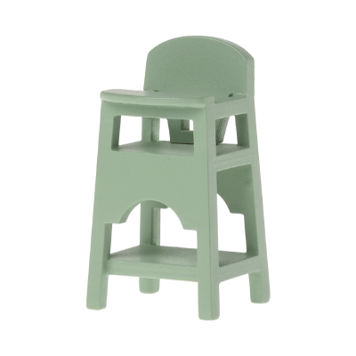 Cette chaise en bois vert va permettre à bébé souris de participer à tous les repas !