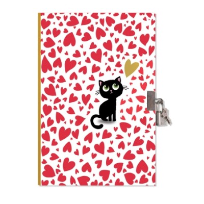 Journal intime de 160 pages décoré d'un chat sur un fond de coeurs