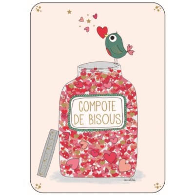 Carte postale simple compote de bisous avec un pot rempli de cœurs