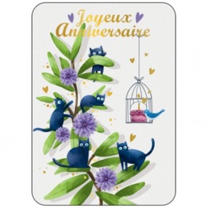 Carte postale Joyeux anniversaire Chats et Oiseau.