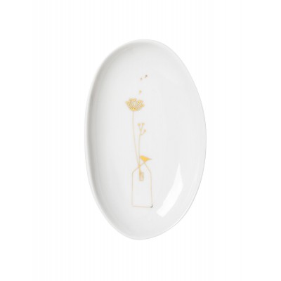 Cet nichoir à oiseaux est en forme de gland et de couleur ocre, il est en bambou