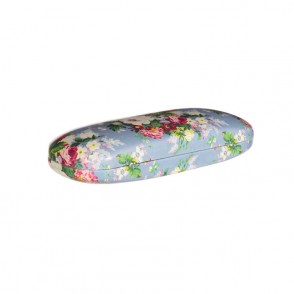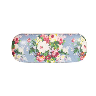 Étui à lunettes vintage décoré de roses sur fond bleu