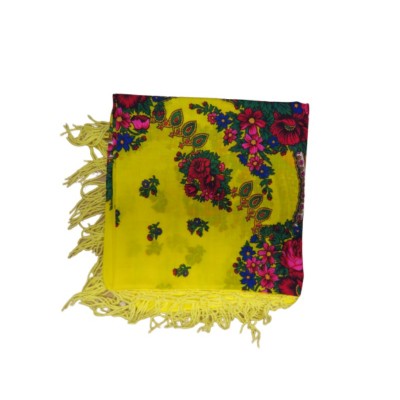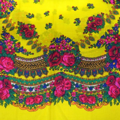 Magnifique foulard slave vert avec de jolies fleurs et motifs colorés.