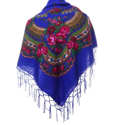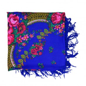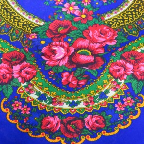 Magnifique foulard slave bleu avec de jolies fleurs et motifs colorés.