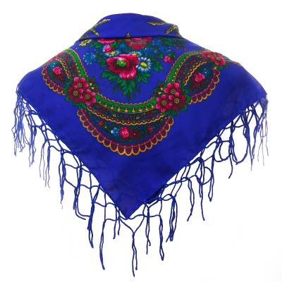 Magnifique foulard slave bleu roi avec de jolies fleurs et motifs colorés.