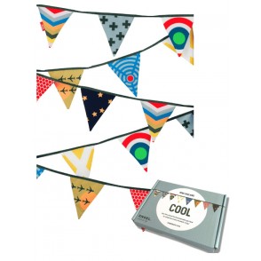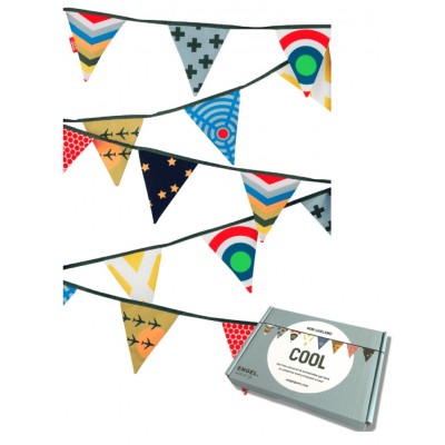 La mini guirlande "cool", aux beaux motifs, est fabriquée à partir de bouteilles en PET recyclées et convient à l’intérieur et à l’extérieur. Drapeaux à double couture. La longueur totale de la ligne de drapeau est de 3,75 mètres.