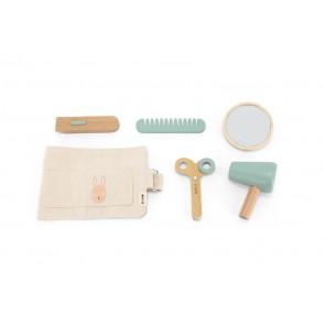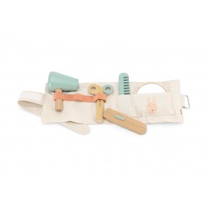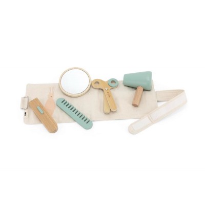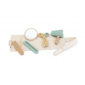 Set de coiffure qui garantit des heures de plaisir ! Peignez, coupez, rasez ou séchez-vous les cheveux et admirez le résultat dans le miroir. La pochette peut être portée autour de la taille.