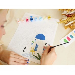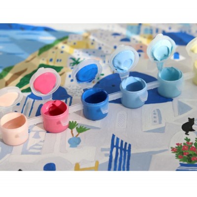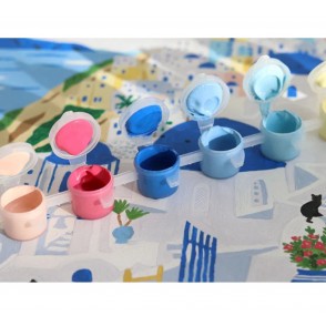Peinture au numéro "Santorini" conçue par l'illustratrice Maja Tomljanovic. Coffret 100% made in France.