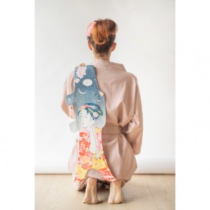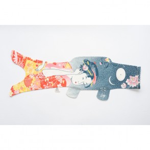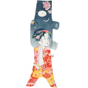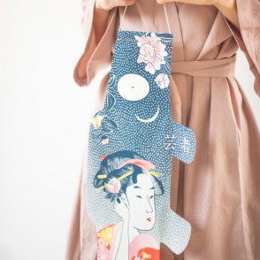 Ce Koinobori dessiné par Madame Mo est en coton bio, il représente une geisha