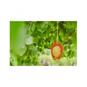 Cet nichoir à oiseaux est de couleur ocre, il est en bambou