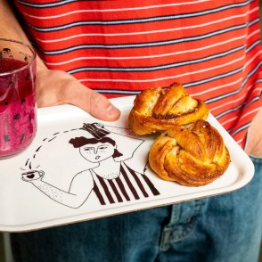 Vous craquerez sûrement pour ce beau plateau en bois illustré d'un couple mangeant un gâteau en noir et blanc, il est décalé et tout à fait...