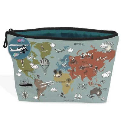 La trousse est imprimée de la carte du monde