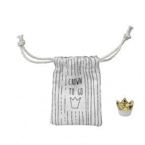 Porte bonheur composé d'une poupée en bois peinte avec un sac en tissu imprimé.