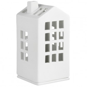 Mettez une touche de poésie à votre intérieur avec ce photophore maison avec cheminée et toit ajouré, la lumière passera au travers des fenêtres.