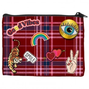 Ce porte-monnaie Tartans en coton avec son petit badge est idéal pour ranger votre petite monnaie pour le café du matin ou la petite douceur de la boulangerie !