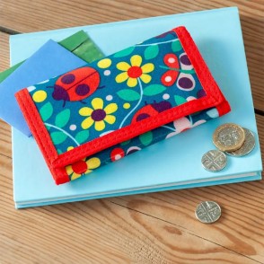 Portefeuille pour enfants décoré de coccinelle et fleurs.