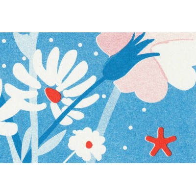 Grâce à la technique de la risographie, les couleurs sont très intenses et audacieuses. Chaque tirage est unique puisque de petits décalages naturels viennent personnaliser chaque tirage.