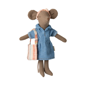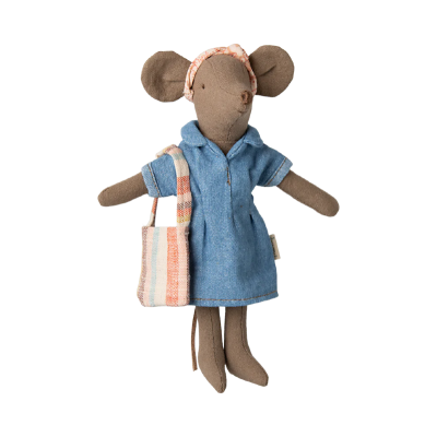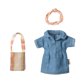 Tenue printanière pour maman souris composée d'une robe en jean, un bandeau et d'un joli sac !