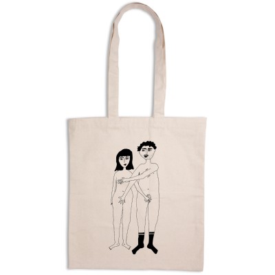 Tote bag sérigraphié en coton avec illustration Helen b : couple nu