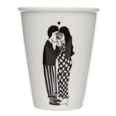 Tasse en porcelaine décorée d'un couple qui s'embrasse en secret Helen B, créatrice belge.