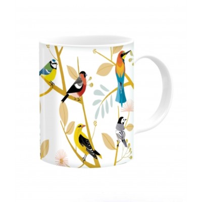 Tasse en porcelaine décorée d'un homme portant un gâteau d'anniversaire par Helen B, créatrice belge.