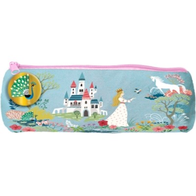 Cette trousse ronde Princesse Bleue avec son badge métallisé accompagnera les écoliers toute au long de l'année !